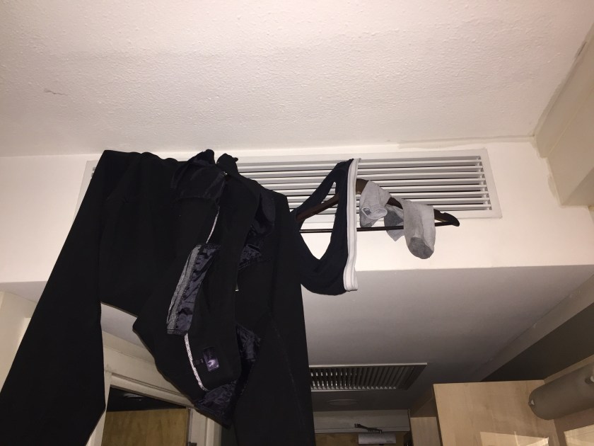 So I will need to stop by a store and pick up necessities likes more underwear and socks. Right now everything that I was wearing got hand washed in the shower and is hanging up to dry near the vents. Hiker trash style.