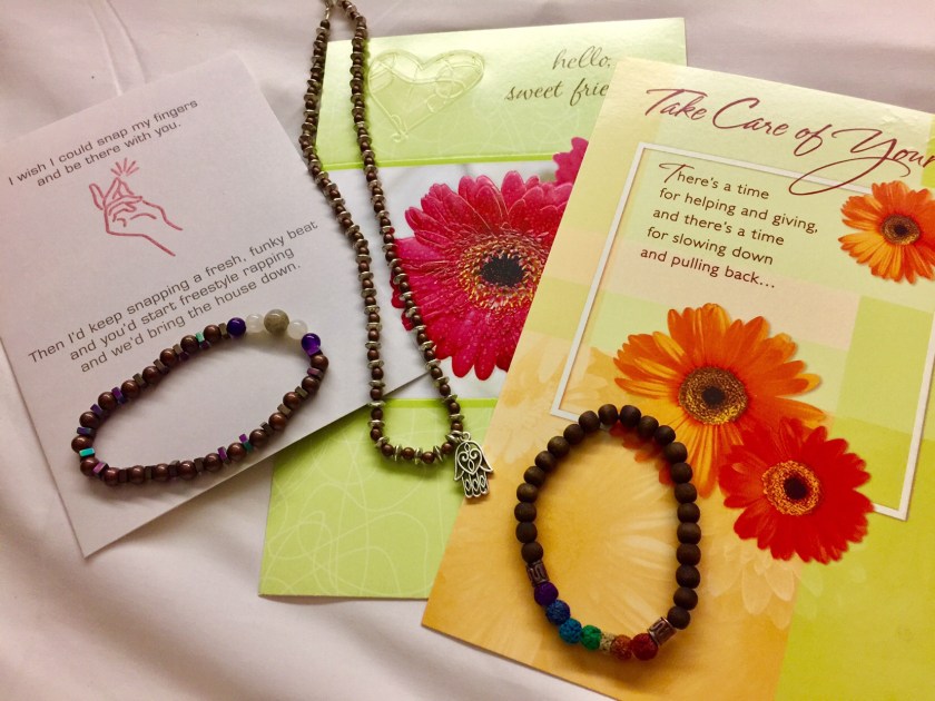 Alyson, my boss Staci and my team at work all signed cards for me. Alyson also made me a necklace and bracelet for protection. Mary gave me a bracelet for my chakras. I felt very loved and blessed to be surround my all these loving people