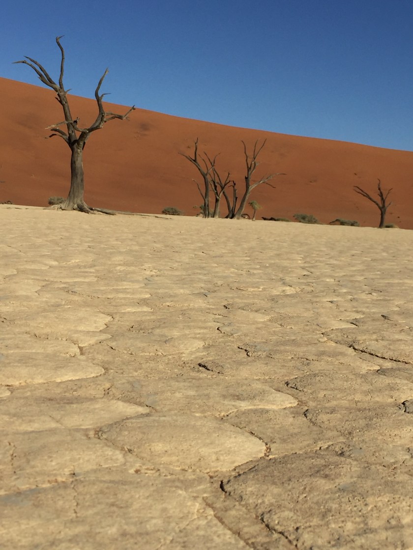 The earth was so dry and cracked, it was about 7-8 football fields long and maybe 1-2 wide. You could hike to the top of “Big Daddy” but it takes normal people about 4 hrs then to get down, you just run straight down the face of the dune. It was hilarious watching people come down. One boy just tucked into a ball and rolled down the hill. His dad did crazy antics right next to him.