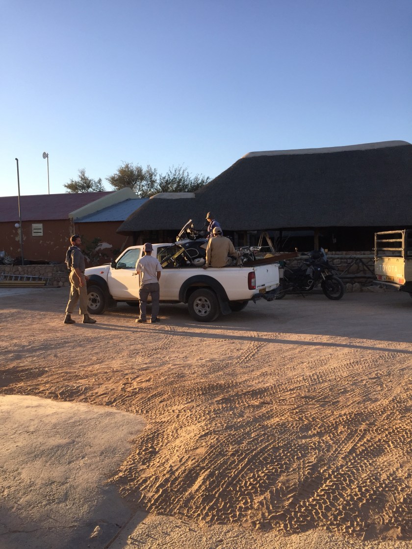 We caught a ride back with a super nice group with mostly Australians and one Swiss girl that I sat with. Turns out the tour guide Kenneth, knew Gerrit and Alta. The people were rented the bike from and had a great first few days with. He gave such positive feedback about the road that we packed up camp and got on the road to the next town of Solitaire. Only 80km away. Easy day…..right?