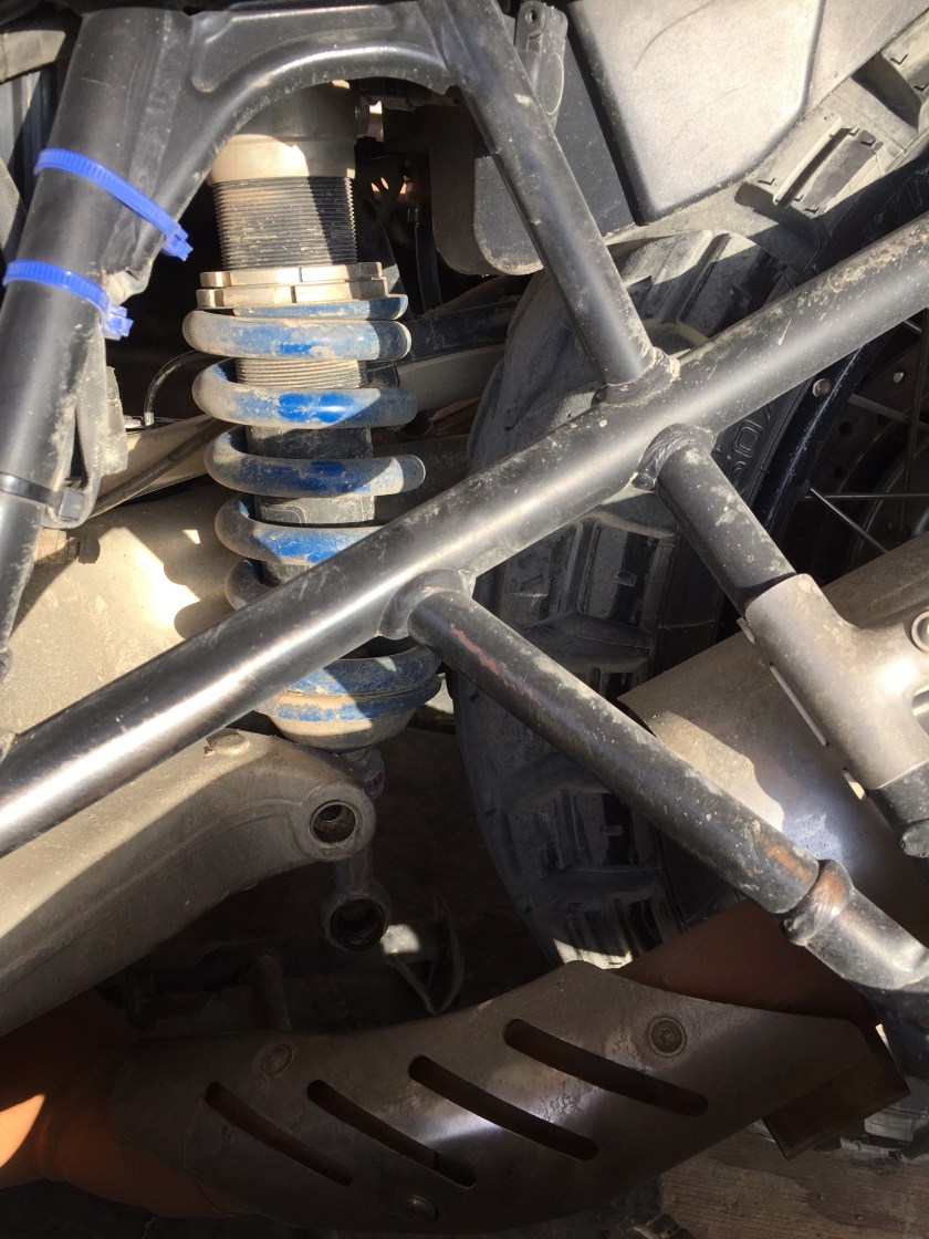 Andrew and Laura had just topped the hill in front of me when I started out again when suddenly the bike dropped down 1-2 feet. I knew immediately something was wrong. “Oh shit….the shock broke”. I remained calm and since the rear wheel was still able to spin, I just pulled in the clutch and let it roll to a stop.